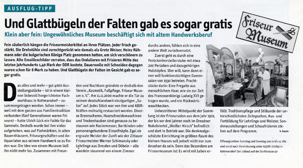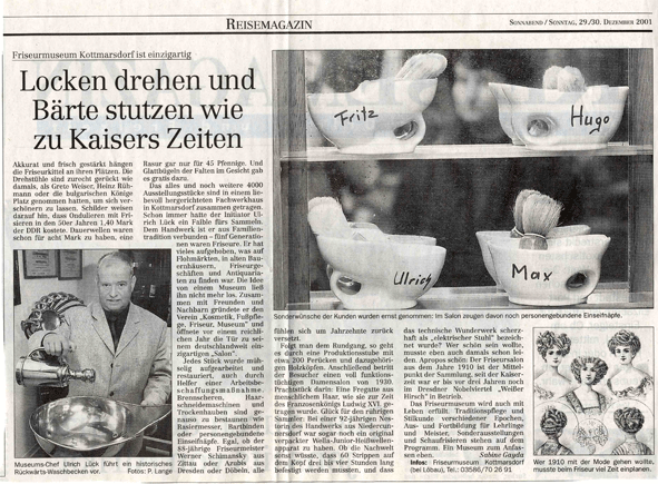 Friseurmuseum Kottmarsdorf Ulrich Lueck - Friseursalon v. Weissen Hirsch u.a Pfauperuecke bis 2016 - Exponate jetzt in Neu- Ulm -gr. Friseurmuseum d. Welt zurück zur Übersicht