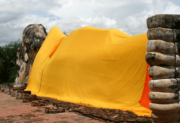 Thailand - buddhist. Tempel d. Ruhenden Buddha in Ayutthaya - 40m 8m hoch - aus Ziegeln u. Moertel zurück zur Übersicht
